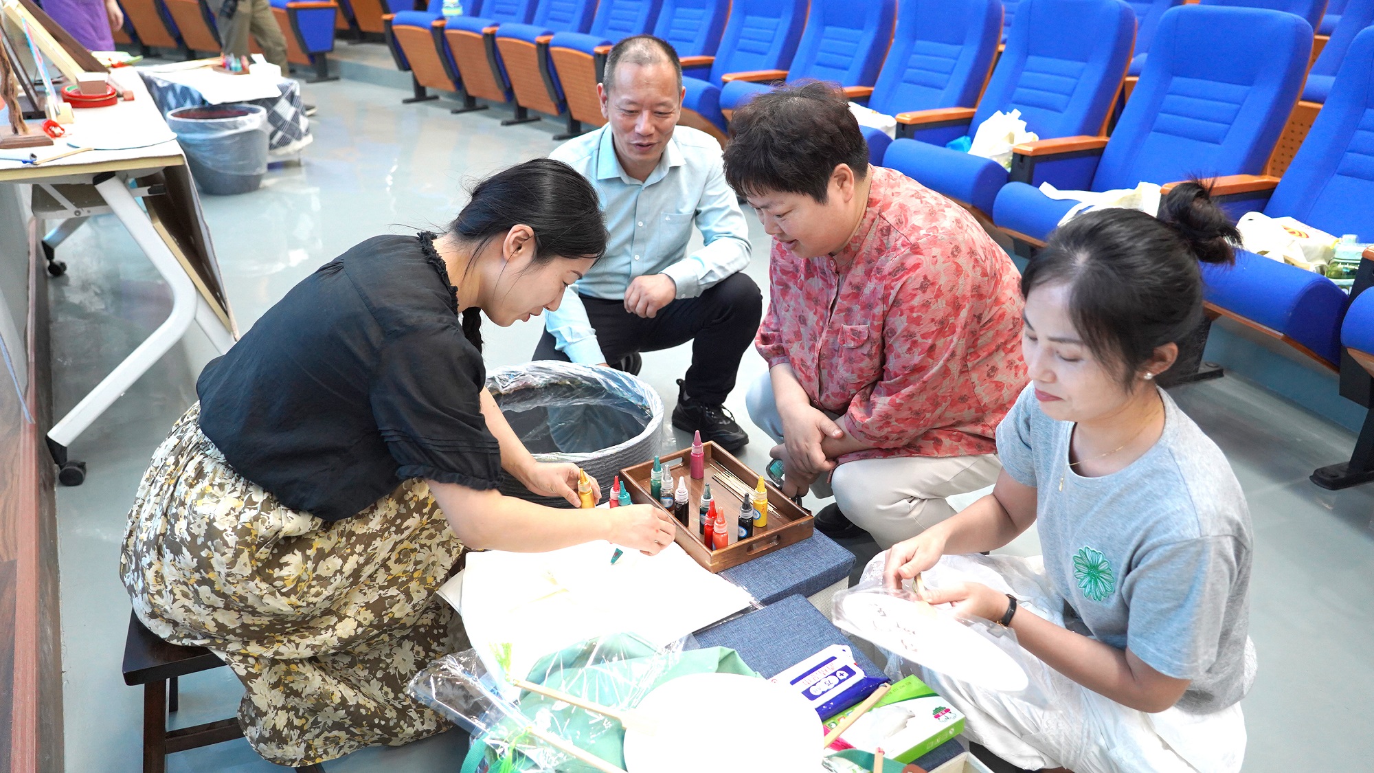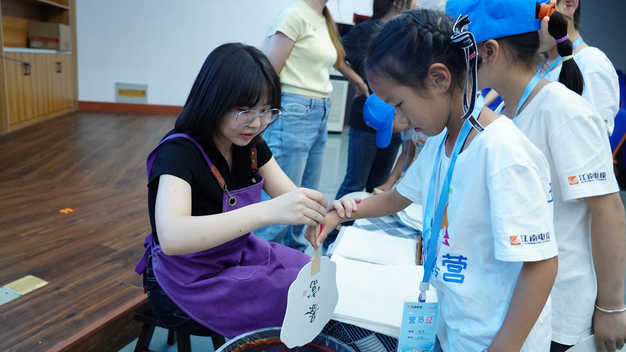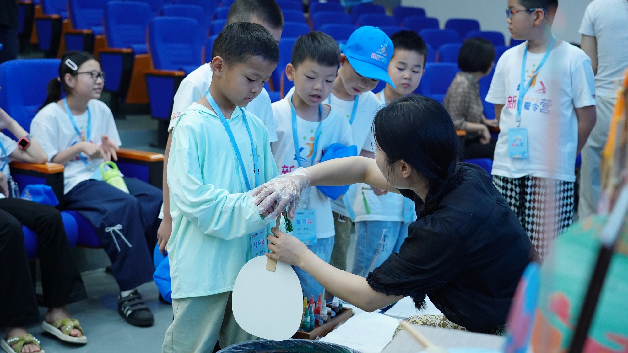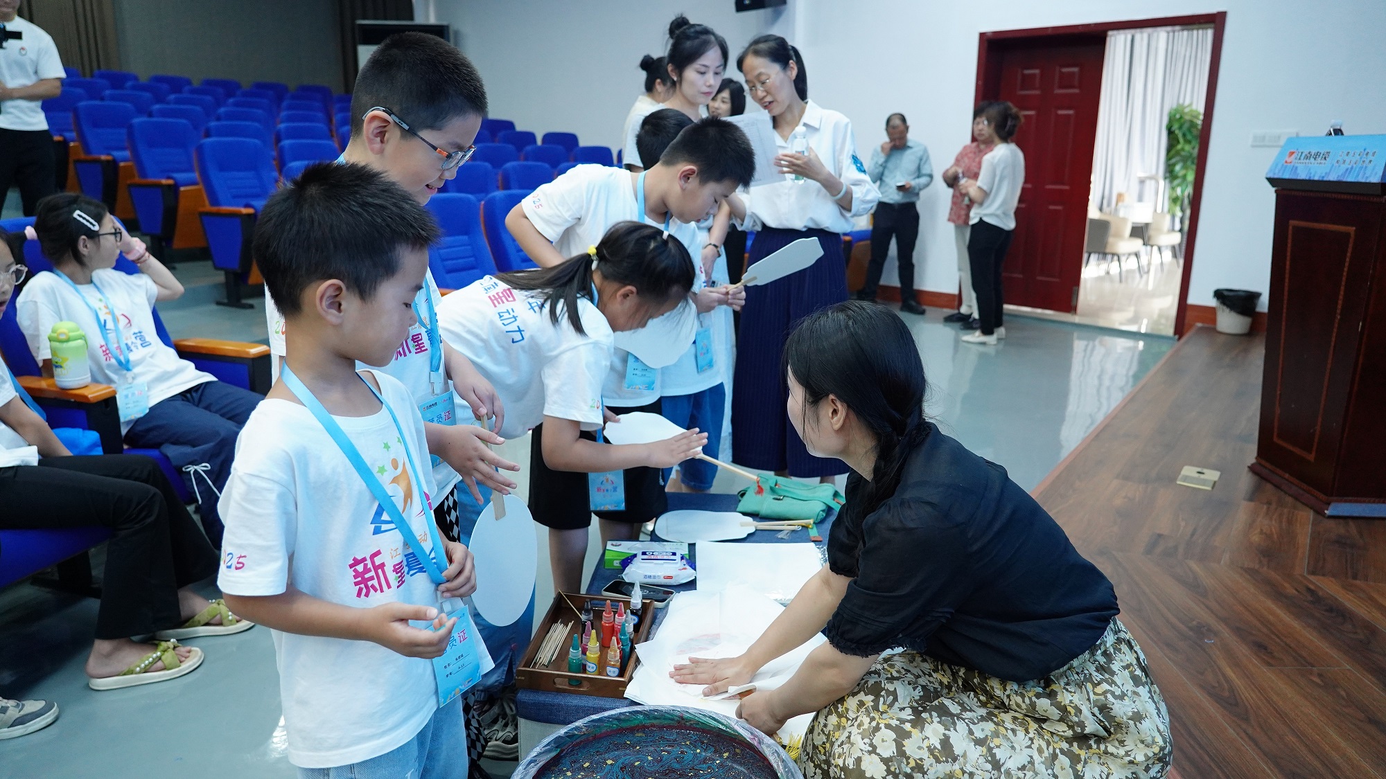 在老師的指導(dǎo)下,孩子們認(rèn)真學(xué)習(xí)漆扇制作技巧,從顏色選擇到滴入漆料再到素扇入水附著花紋,一把把絢麗、雅致的漆扇躍然而出。大家在實踐中感受非遺技藝的精妙,更在潛移默化中培養(yǎng)了對傳統(tǒng)文化的熱愛。